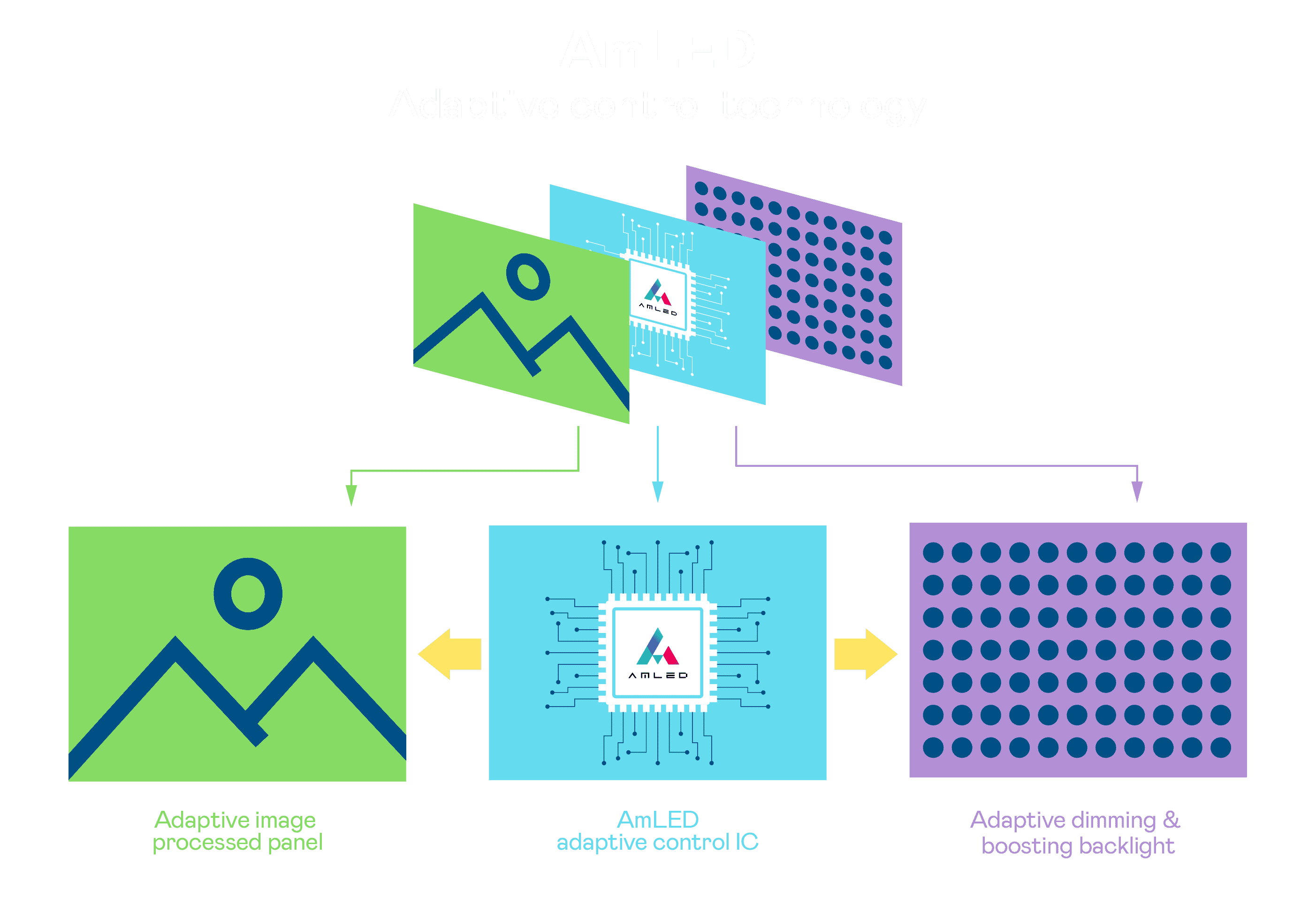 AmLED 具备更省电与低蓝光特性。。与一般的 LED 背光显示技术相比,,,由于 AmLED 常时处于局部调光状态,,,其功耗仅有前者的 50% 左右,,,同时 AmLED 还具备低蓝光特性,,满足长时间使用的护眼需求。。。