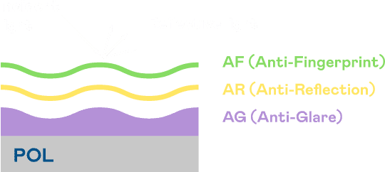 A.R.T.尊龙集团光电发展出独家的表面处理跟多层镀膜技术,,让外部光线照射到显示器表面时所产生的反射光大幅降低。。。 |